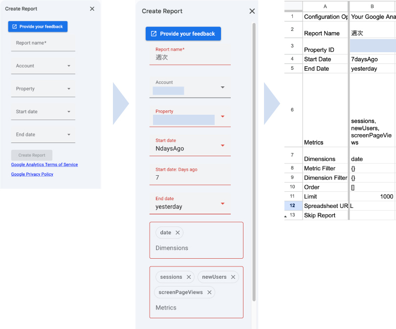 「Config」シートのA列に【シートのURL】B列に【シート名】を記載します。