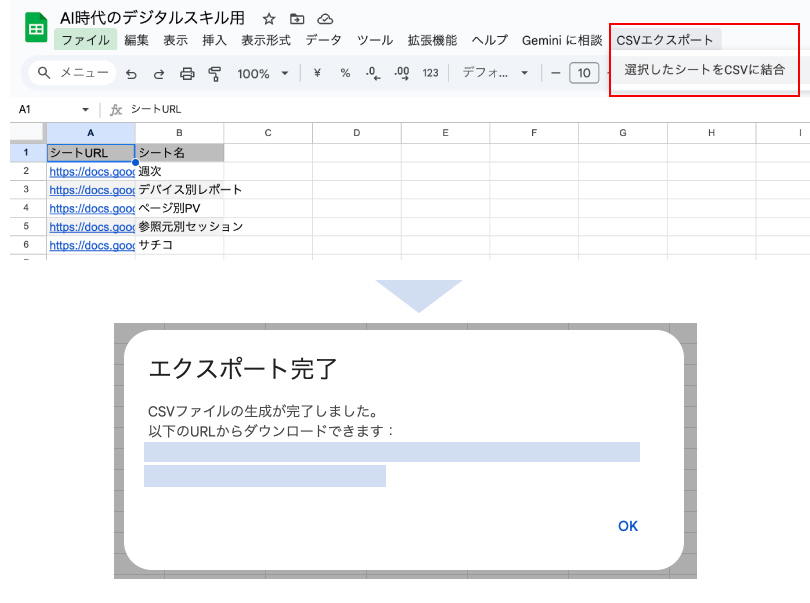 【コピペでOK】複数のスプレッドシートをCSVで「一括DL」&「結合DL」生成AI×GASで完全自動化