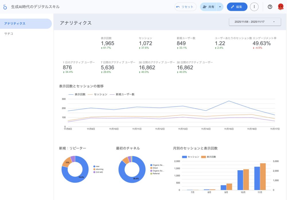 ブログ運営に関わる「あらゆる数字」をたった1枚のレポート(ダッシュボード)にまとめられる。これがLooker Studioの真の力です。