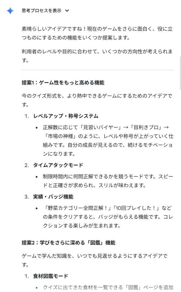 さらに機能を充実させるためにGeminiにアイディアをだしてもらう