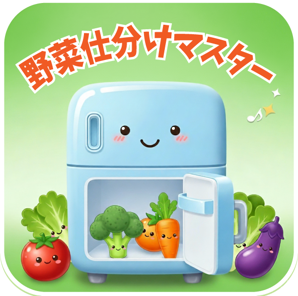 内容: 正解した時に、「きゅうりはヘタを上にして立てて保存すると長持ちしますよ!」といった、もう一歩踏み込んだ豆知識(Tips)を表示します。
