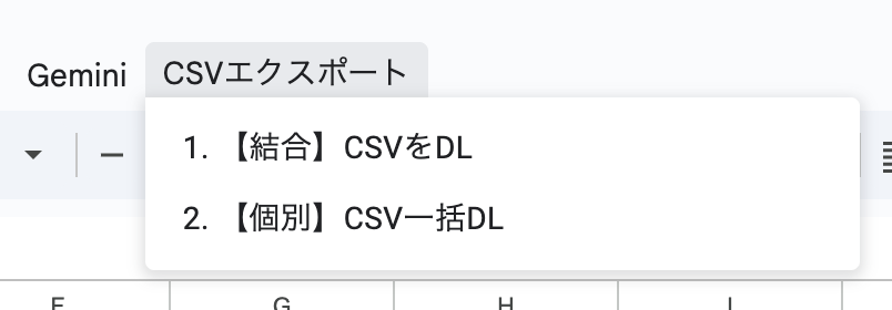 スプレッドシートのメニュー画面から、結合or個別選べるようになり、これで今回の2つの機能が完成しました!