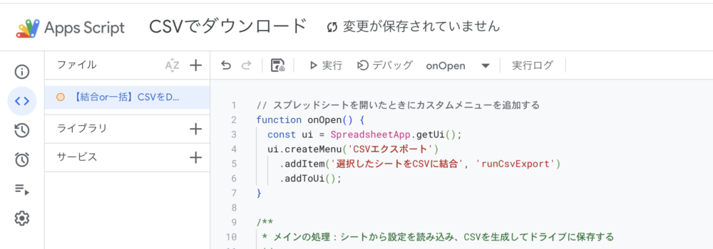 ui.createMenu('CSVエクスポート')