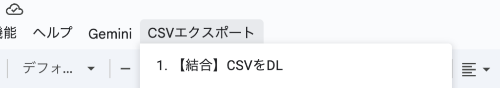 .addItem('1. 【結合】CSVをDL', 'runCsvExport') // 結合用