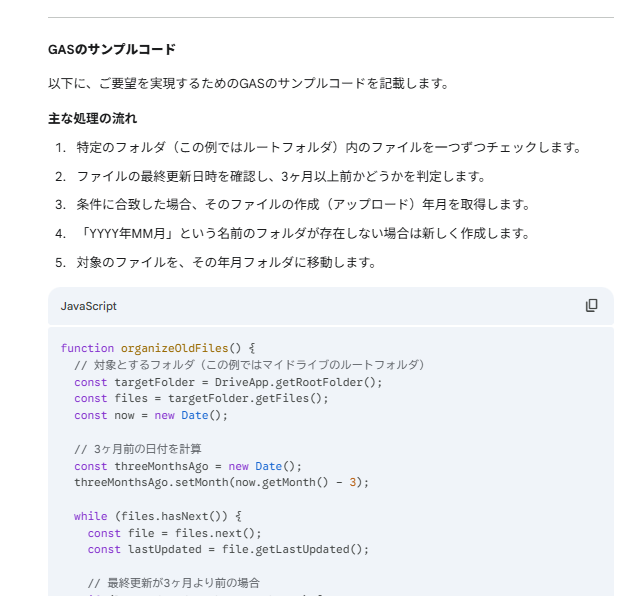 生成AIを使った【3ヶ月以上更新なしファイルを更新日時のフォルダを作ってその中に整理するGAS】の作成方法